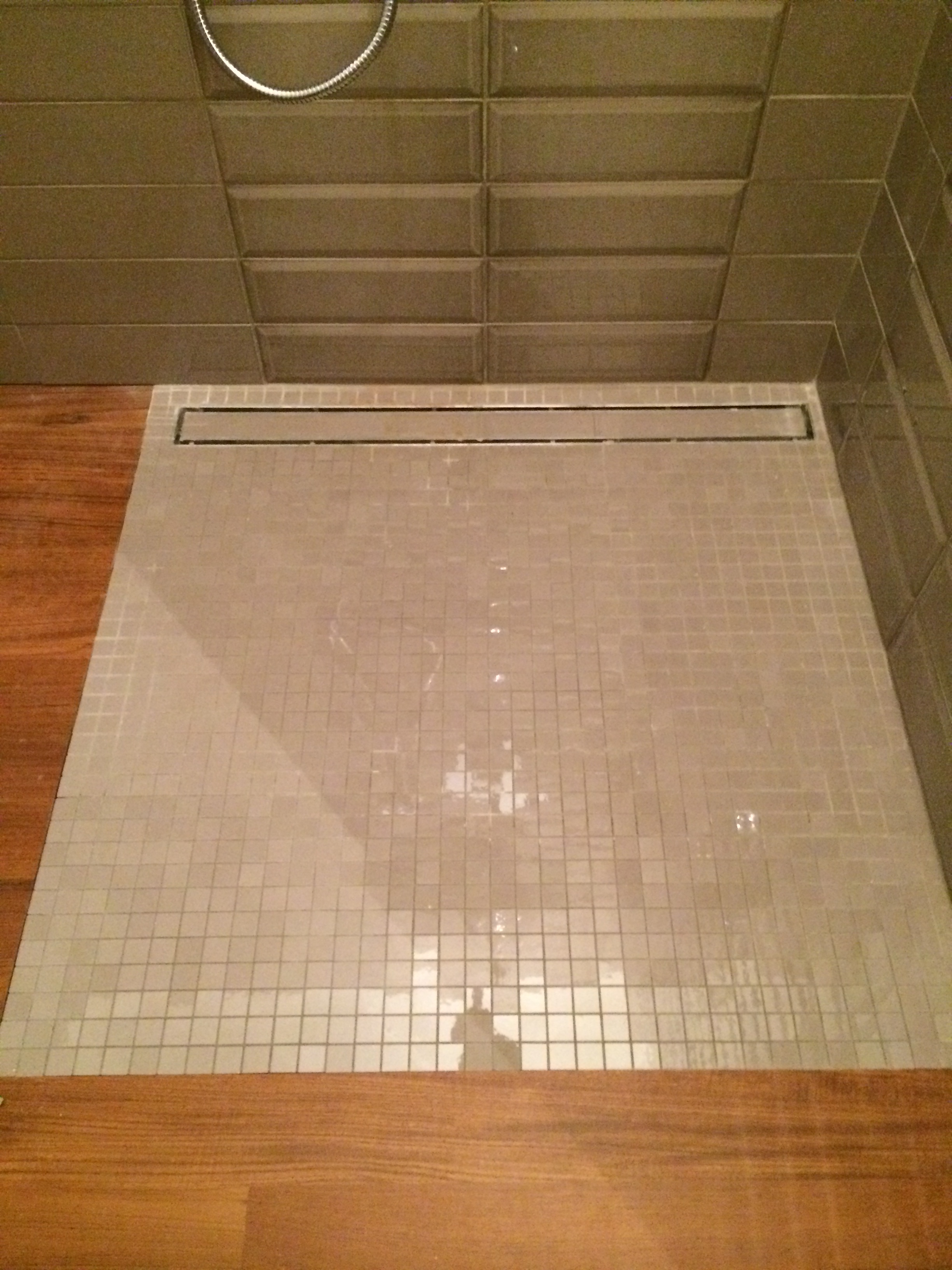 Fortunatamente ci sono modi per rendere piacevole e organizzato anche un bagno senza finestre. Dopo avere smontato una vasca da bagno, abbiamo potuto ricavare un box doccia e un ripostiglio ad uso scarpiera. Una parete in vetro sabbiato fa intendere che esista solo un doccione gigante. Riprogettare i bagni per trasformarli in piacevoli stanze è una delle nostre passioni.