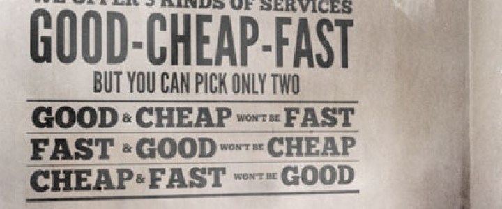 Offriamo tre tipo di servizi (ma ne puoi scegliere solo due) Ben fatto ed economico non può essere veloce Veloce e ben fatto non può essere … Continue reading Good Cheap and Fast
